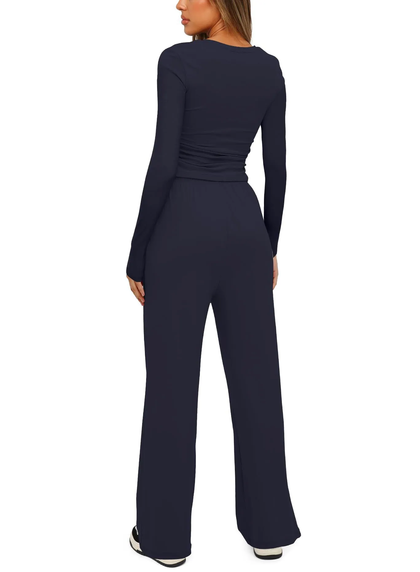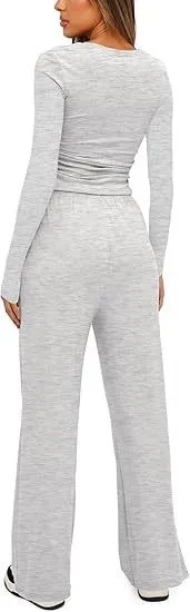 ✅ Elegant Design – Slim-fit long sleeve top with flattering wide-leg pants for a chic look.👗