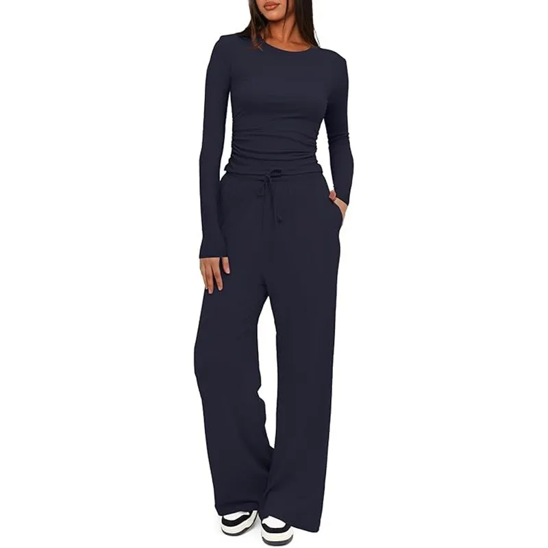 👚2 Pieces Women’s Suit – Autumn Winter Long Sleeve Top & High Waist Wide Leg Pants | Elegant Casual & Office Wear Set👖