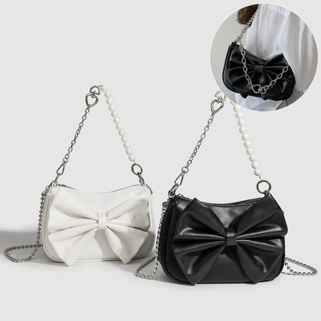 👜Women’s PU Bow Handbag – Autumn Winter Underarm Tote with Pearl Chain Shoulder Strap