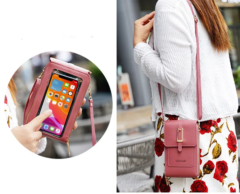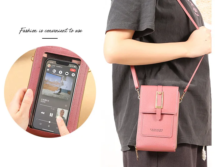 💖Stay stylish & hands-free with this women’s crossbody phone bag. Transparent touch screen, PU leather, multi-color options – perfect for daily use & travel.👜