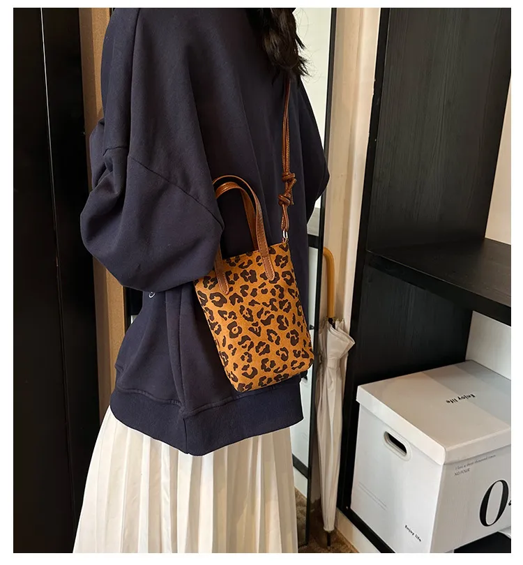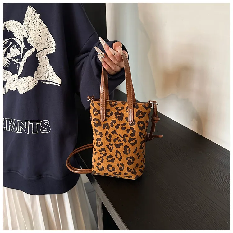 👜Women’s Retro Leopard Print Crossbody Bag – Autumn Winter Suede Shoulder Phone Bag