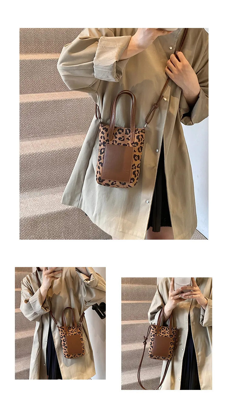 💖Chic retro leopard print crossbody bag for women. Soft PU suede, spacious design & stylish autumn-winter look – perfect phone bag for daily wear.👜
